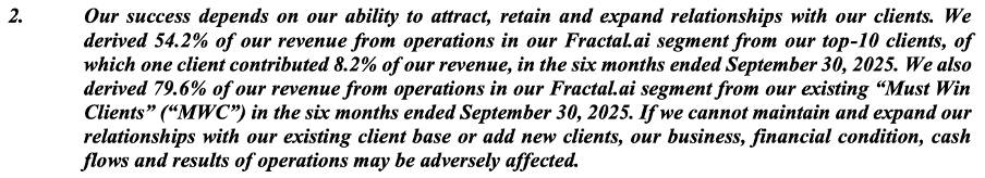Fractal Analytics helps large enterprises make better business decisions using data, analytics, and AI. Instead of selling traditional software, Fractal embeds AI systems into client operations to support decision-making across areas such as customer behaviour analysis, pricing, marketing effectiveness, supply chain optimisation, product launches, and operational efficiency. The company primarily serves large global enterprises, referred to as “Must Win Clients” (MWCs), defined as companies with annual revenue above USD 10 billion, market capitalisation above USD 20 billion, or a customer base exceeding 30 million. As of September 30, 2025, Fractal served 122 such MWCs.
